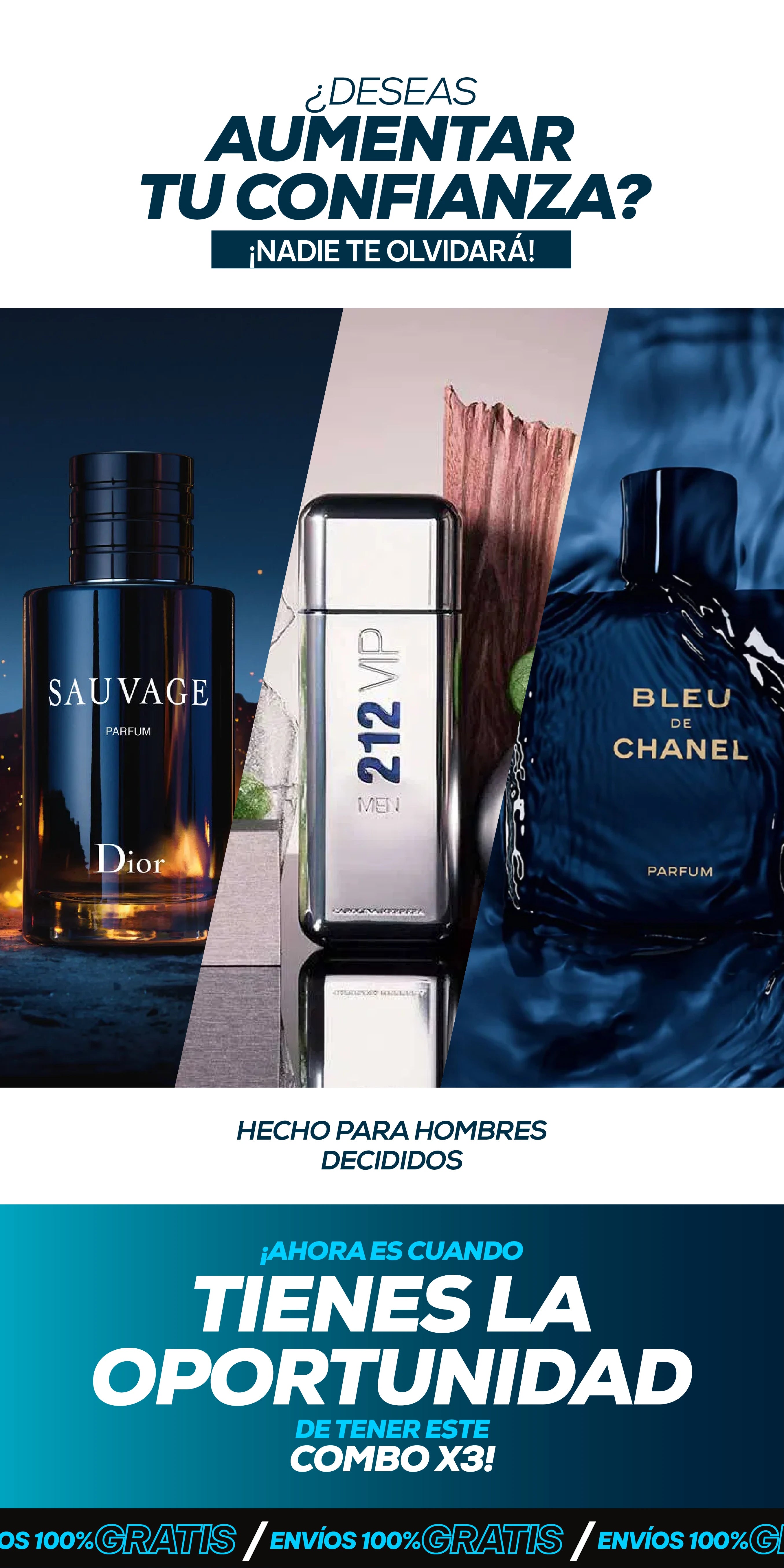 212 VIP BLACK 100ml + DIOR SAUVAGE 100ml + BLEU DE CHANEL 100ml + OBSEQUIOS